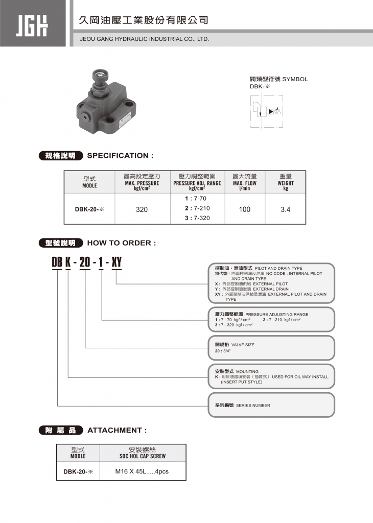 JGH先導(dǎo)式溢流閥、電磁控制溢流閥常規(guī)型號(hào)參考:DBK-20-3 , DBK-20-2 , DBK-20-1