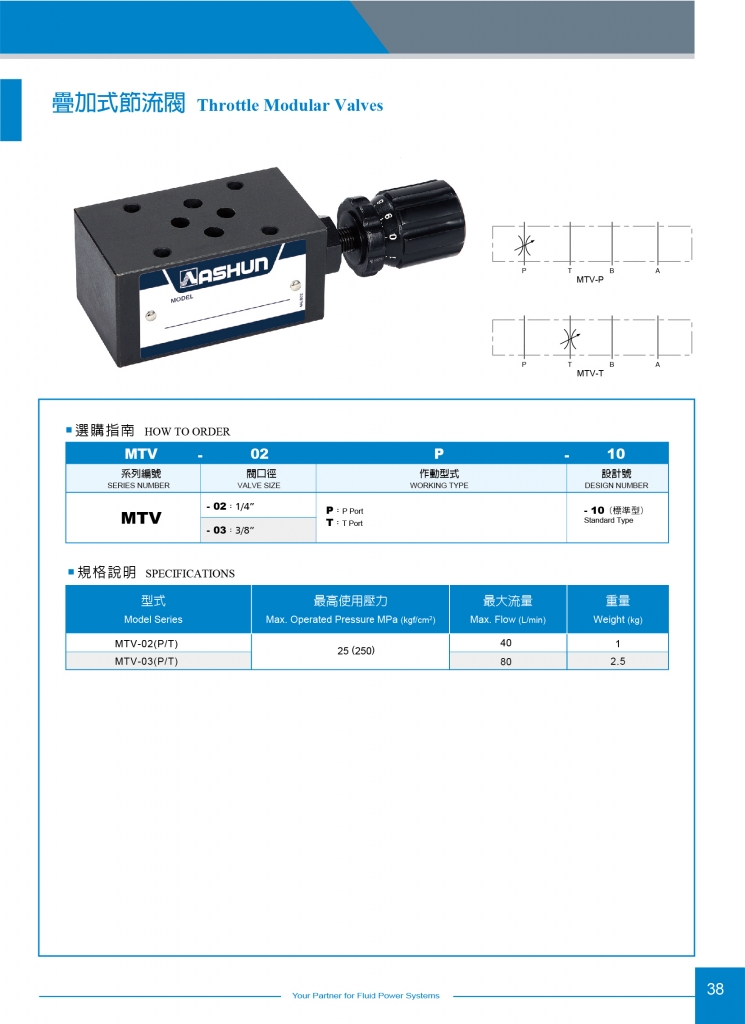 ASHUN疊加式節(jié)流閥常規(guī)型號參考:MTV-02P-10 , MTV-02T-10 , MTV-03P-10 , MTV-03T-10