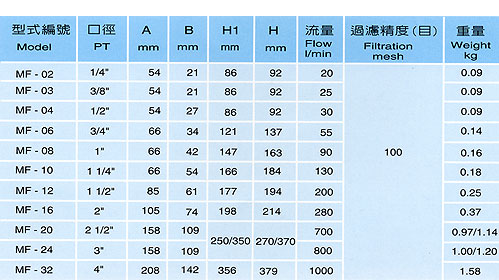 CLC濾油網部分常規(guī)型號參考:MF-02 , MF-03 , MF-04 , MF-06 , MF-08 , MF-10 , MF-12 , MF-16 , MF-20 , MF-24 , MF-32