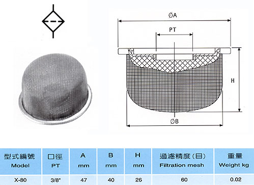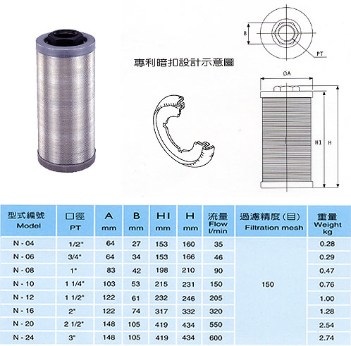 CLC濾油網部分常規(guī)型號參考:N-04 , N-06 , N-08 , N-10 , N-12 , N-16 , N-20 , N-24