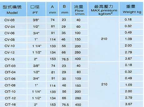 CLC金徠居防逆閥 CV,CIT系列止逆閥