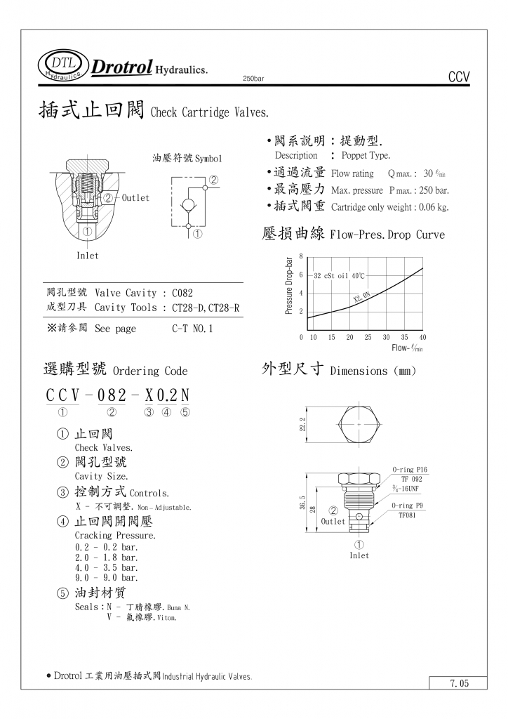 DTL插式止回閥部分常規(guī)型號(hào)參考:CCV-082-X0.2N , CCV-082-X0.2V , CCV-082-X2.0N , CCV-082-X2.0V , CCV-082-X4.0N , CCV-082-X4.0V , CCV-082-X9.0N , CCV-082-X9.0V ,