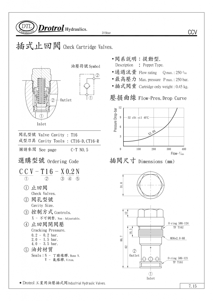 DTL插式止回閥部分常規(guī)型號(hào)參考:CCV-T16-X0.2N , CCV-T16-X0.2V , CCV-T16-X2.0N , CCV-T16-X2.0V , CCV-T16-X4.0N , CCV-T16-X4.0V ,