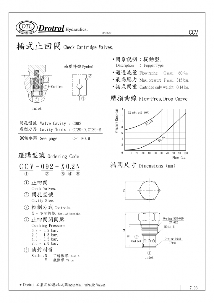 DTL插式止回閥部分常規(guī)型號(hào)參考:CCV-092-X0.2N , CCV-092-X0.2V , CCV-092-X2.0N , CCV-092-X2.0V , CCV-092-X4.0N , CCV-092-X4.0V , CCV-092-X7.0N , CCV-092-X7.0V ,