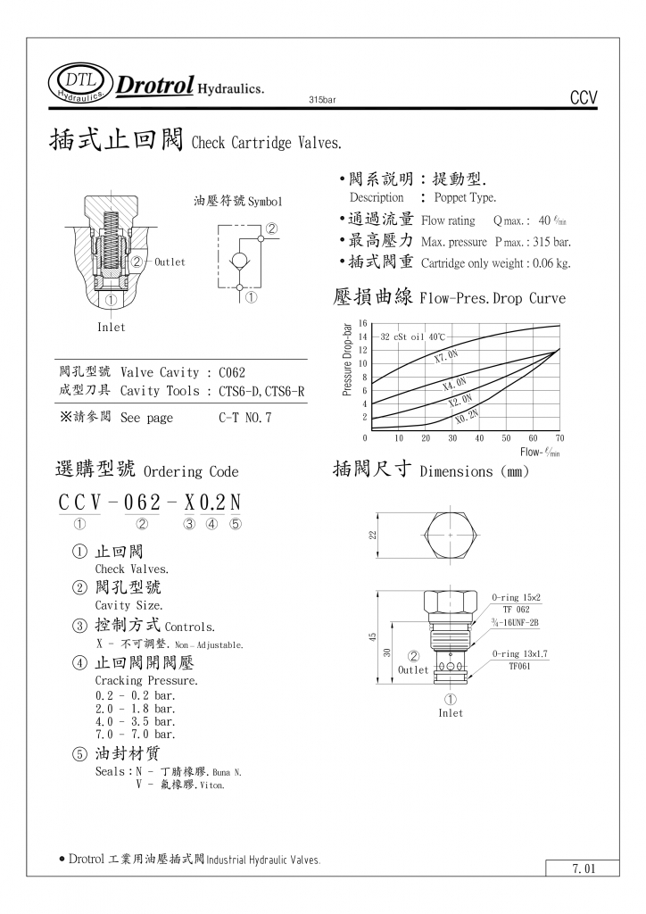 DTL插式止回閥部分常規(guī)型號(hào)參考:CCV-062-X0.2N , CCV-062-X0.2V , CCV-062-X2.0N , CCV-062-X2.0V , CCV-062-X4.0N , CCV-062-X4.0V , CCV-062-X7.0N , CCV-062-X7.0V ,