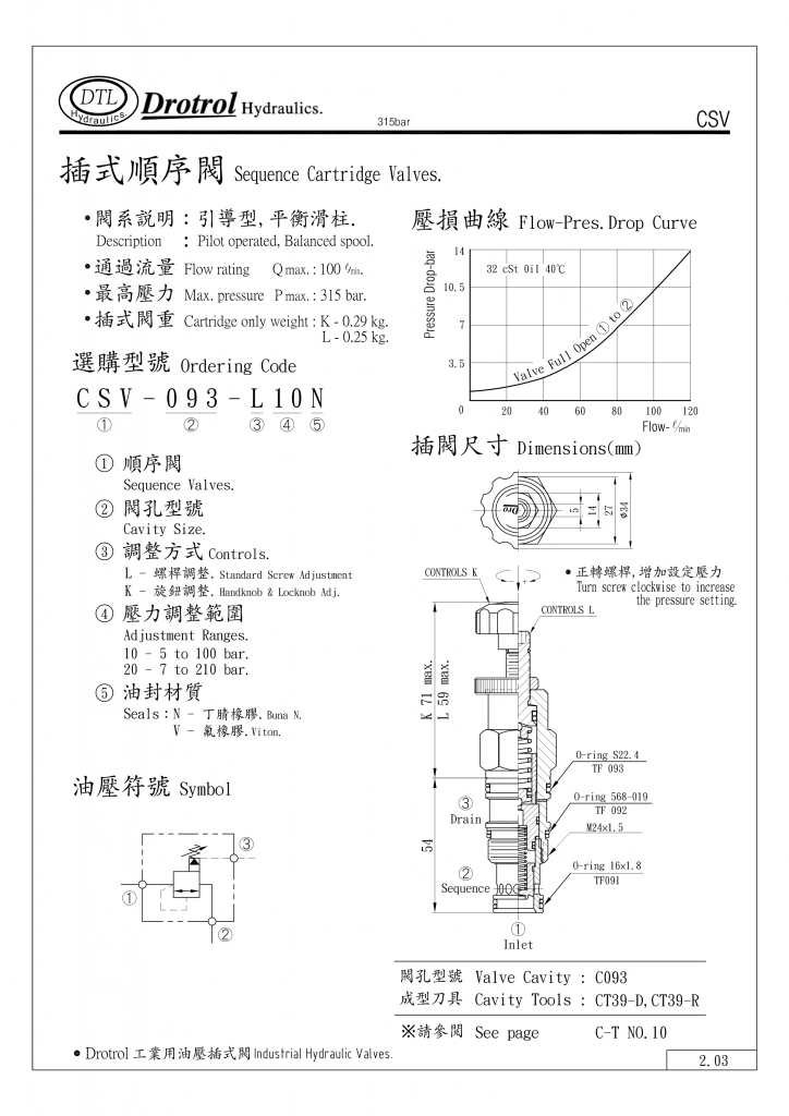 DTL插式順序閥部分常規(guī)型號參考:CSV-093-K10N , CSV-093-K10V , CSV-093-K20N , CSV-093-K20V , CSV-093-L10N , CSV-093-L10V , CSV-093-L20N , CSV-093-L20V ,