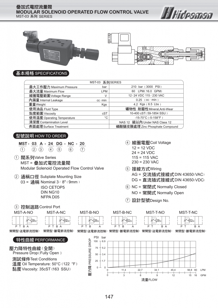 HIDRAMAN海德門疊加式控制閥 MST-02,MST-03系列疊加式電控流量閥