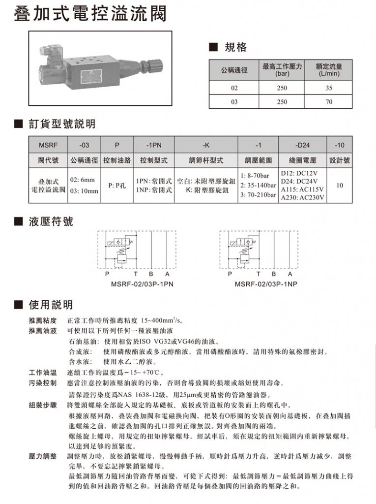 NORTHMAN北部精機(jī)疊加閥 MSRF-02,03系列疊加式電控溢流閥