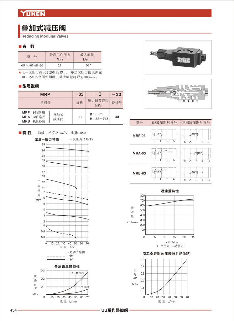 YUKEN油研疊加閥 MRP,MRA,MRB-03系列疊加式減壓閥