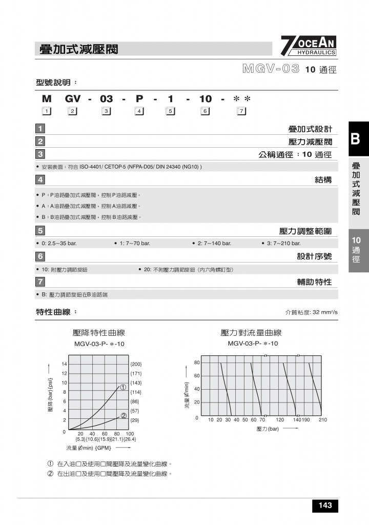 7OCEAN七洋疊加閥 MGV-02,03,04系列疊加式減壓閥