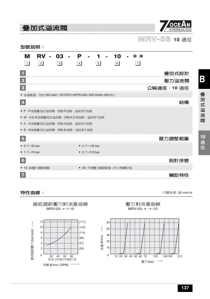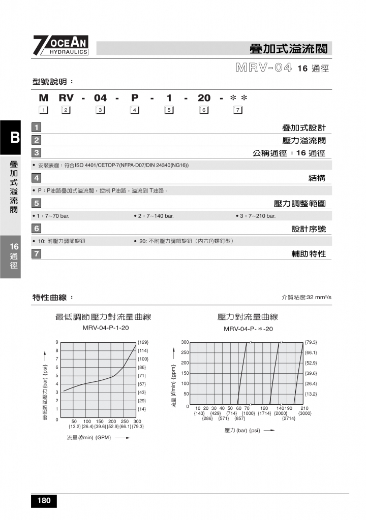 7OCEAN七洋疊加閥 MRV-02,03,04系列疊加式溢流閥