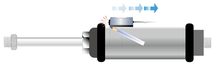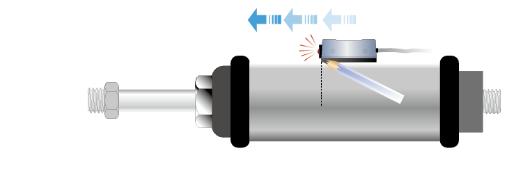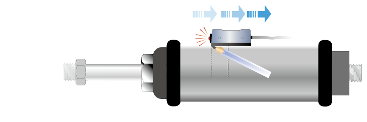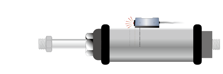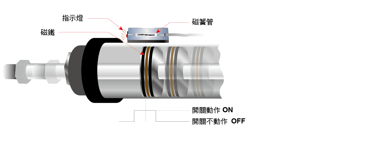 當氣壓缸動作,裝置在活塞內(nèi)的磁鐵向磁性傳感器接近時,磁性傳感器內(nèi)的磁簧管將會感應到磁場的變化,使磁簧管的接點閉合而導通電路。